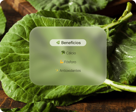 É um vegetal rico em cálcio e fósforo. Também é fonte de antioxidantes de vitamina C.