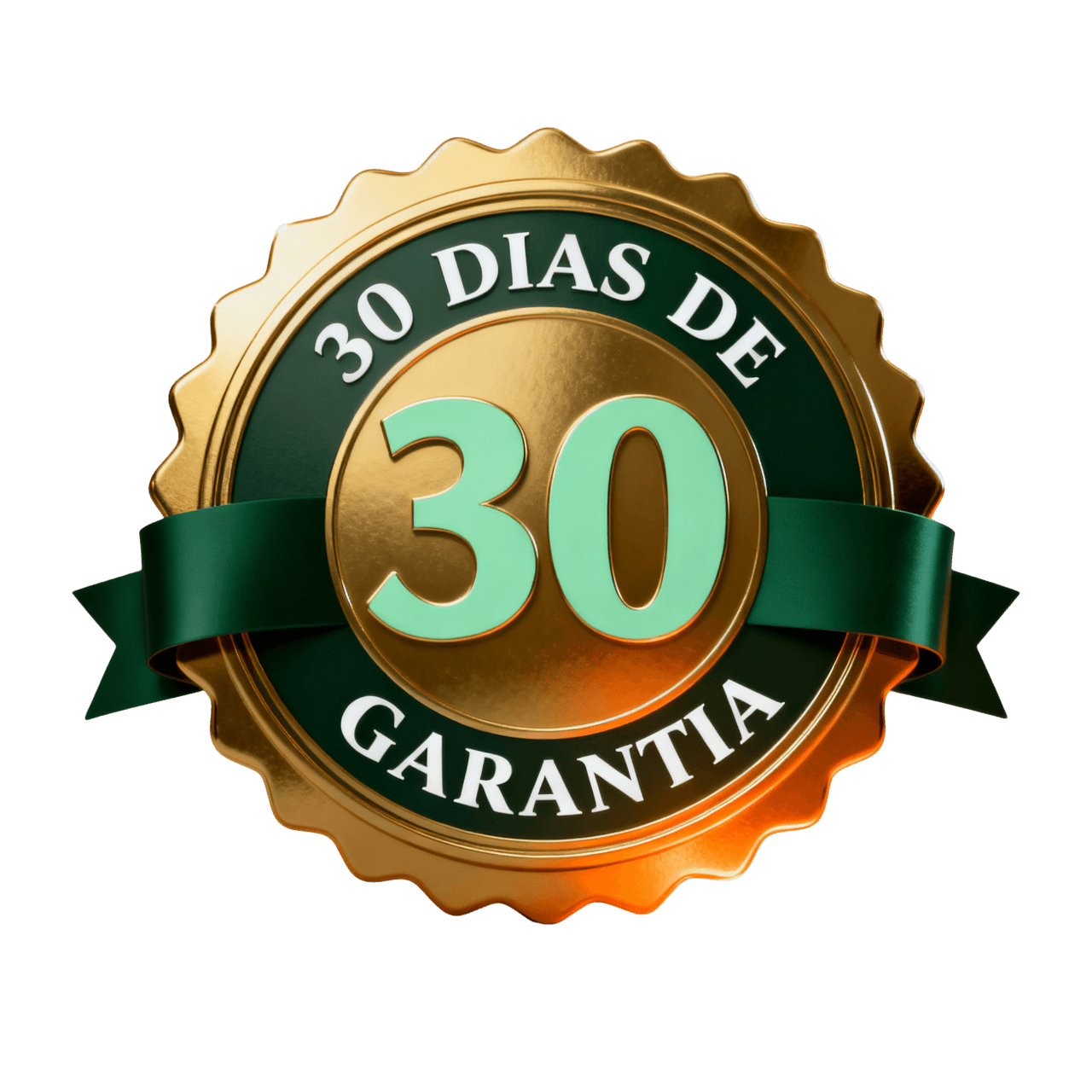 Caso Você não esteja satisfeito com o produto, você tem até 30 dias da data de entrega para solicitar a devolução do seu investimento. Essa é a nossa garantia de que temos um produto testado e aprovado. *Válido apenas para compras no site.
